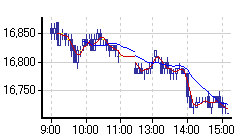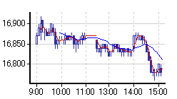 後場は中ごろまで小幅高で推移していたものの、中盤を過ぎると次第に上値の重さを警戒した利益確定売りが目立った。前場に日経平均が1万6900円台を付け、心理的な節目の1万7000円に接近したことで戻り売りが膨らんだ。また、5月11日の取引時間中の安値(1万6840円)と翌12日高値(1万6655円)との間にあいていた「窓」を埋め、目先の目標を達成したことも、後場の買い控えにつながった。