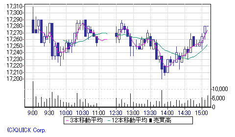 現在値 : 17280 (15:10) -30 -0.17%