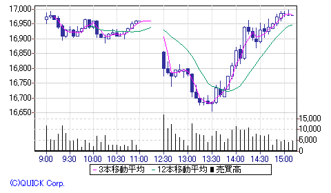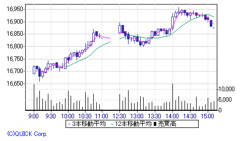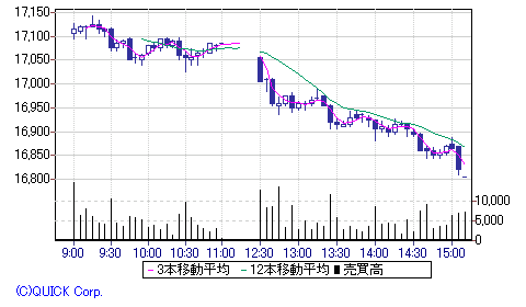 現在値 : 16875 (15:10) -135 -0.79%