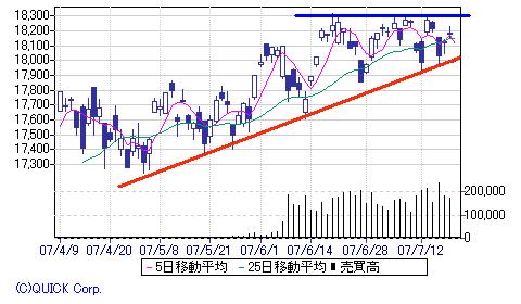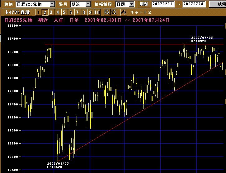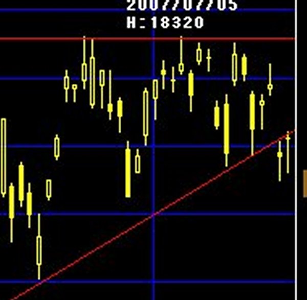 下の線は、2月の世界同時株安以来、強く働いてるサポートライン。