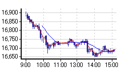 27日の東京株式市場で、日経平均株価は反落。大引けは前日比142円53銭(0.85%)安の1万6669円7銭だった。1万7000円の節目を前に高値警戒感が強く、株価指数先物主導で下げ幅を広げた。9月中間決算発表が前半のヤマ場を迎える中、「これまでのところ通期見通しに慎重な企業が予想外に多い」との見方が広がり始め、買い手控え気分が強まった。キヤノンや信越化など国際優良株の多くが利益確定売りで大幅安となった。東証1部の売買代金は概算2兆5300億円(速報ベース)。